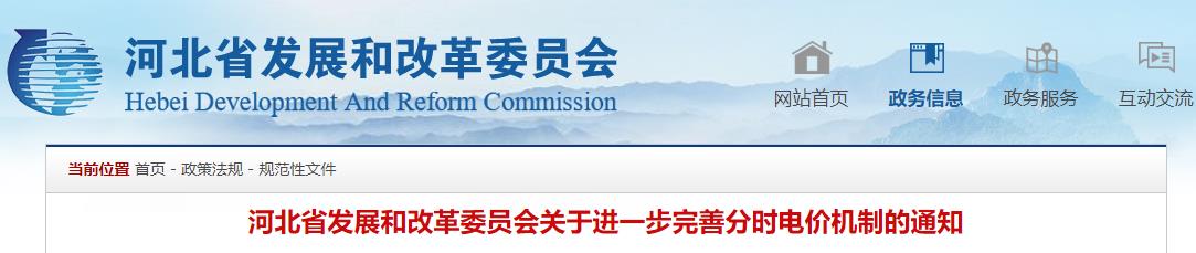 11月10日,河北省发展和改革委员会发布关于进一步完善分时电价机制的通知,明确河北省工商业电力用户峰谷分时电价政策实施范围暂按现行有关规定执行。即电网企业供电营业区域内的工商业电力用户(暂不实行峰谷分时电价的用户除外,见附件)均实行峰谷分时电价,其中:对两部制工业用户和受电变压器容量在100千伏安及以上的单一制用户实行尖峰电价。原文如下: