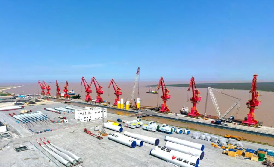 全链条、系统化布局,正是盐城多年来着重发力的地方。盐城现有新能源产业规上企业107家,基本覆盖产业链装备制造的主要环节,盐城也成为国内产业规模大、配套能力强、集聚效应佳的风电装备制造基地,已经形成盐城港大丰港区、射阳港区、滨海港区、响水港区四大港区为核心的“海上风电母港集群”,保障深远海风电项目设备运输及运维设备、人员出海的港口需求。目前,风电整机产能达2300台(套)/年、风电叶片产能达8529片/年、风电塔筒、导管架产能65.5万吨/年。