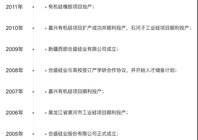 此后数年,合盛硅业以以浙江嘉兴为总部基地,先后在新疆石河子、新疆鄯善、四川泸州等地建设产业基地,同时上马有机硅、工业硅生产线。