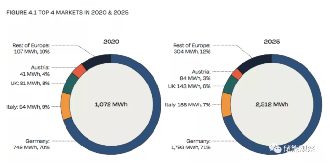 在其五年分析中,德国将继续在住宅储能领域保持无可争议的领先地位,意大利紧随其后。