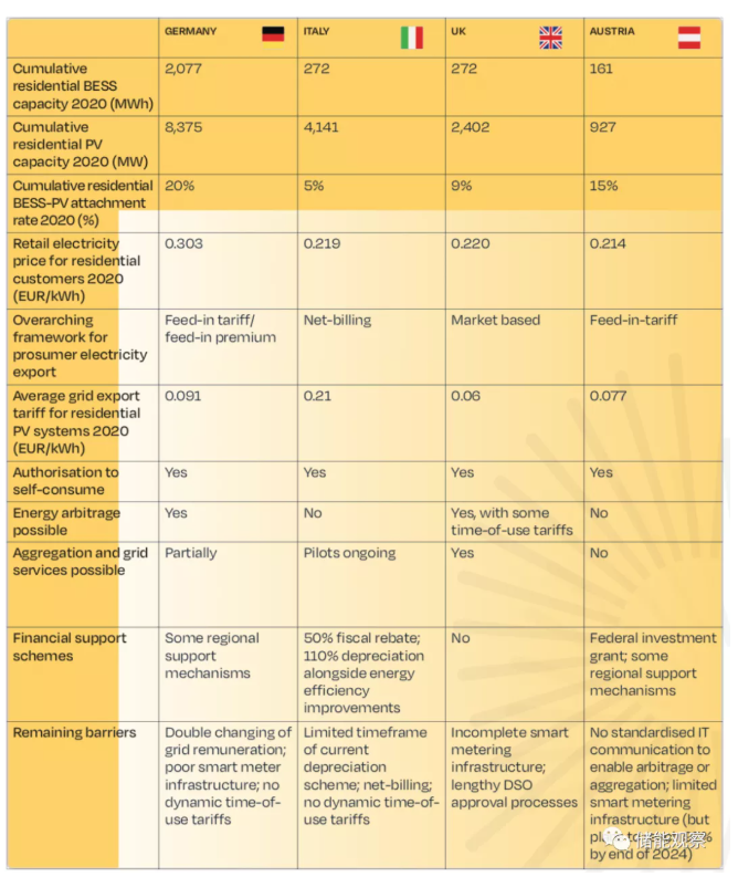 在意大利,除了现有的支持计划外,对太阳能和储能引入了强有力的财政激励,导致市场年增长率达到44%,装机容量94MWh。不同的市场条件使得剩下的前3个国家实现了两位数的增长——包括英国对消费者友好的电价,以及奥地利和瑞士的政府激励和支持政策框架。
