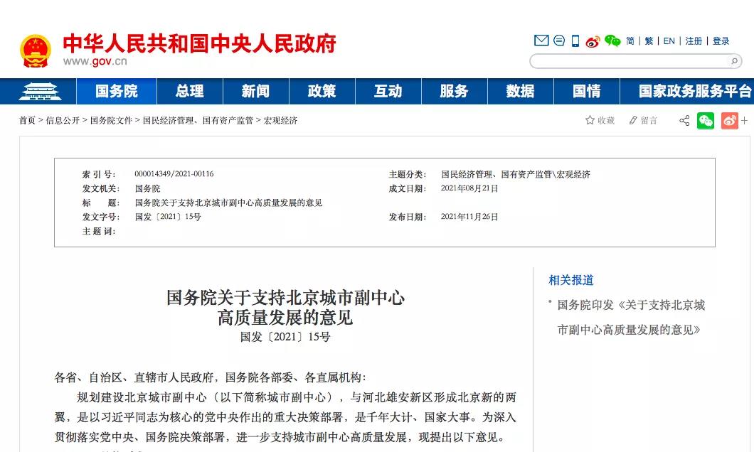 规划建设北京城市副中心(以下简称城市副中心),与河北雄安新区形成北京新的两翼,是以习近平同志为核心的党中央作出的重大决策部署,是千年大计、国家大事。为深入贯彻落实党中央、国务院决策部署,进一步支持城市副中心高质量发展,现提出以下意见。
