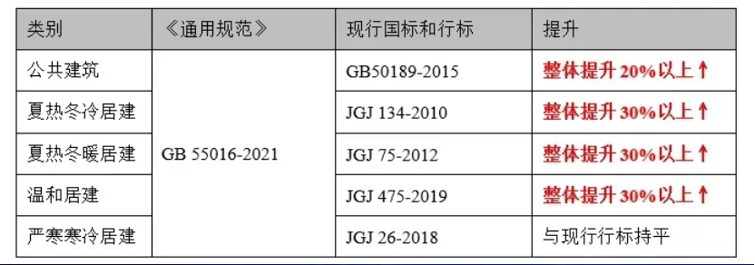 2.0.1:新建居住建筑和公共建筑平均设计能耗水平进一步降低,在2016年执行的节能设计标准基础上降低30%和20%。其中严寒和寒冷地区居住建筑平均节能率应为75%,其他气候区平均节能率应为65%;公共建筑平均节能率为72%。