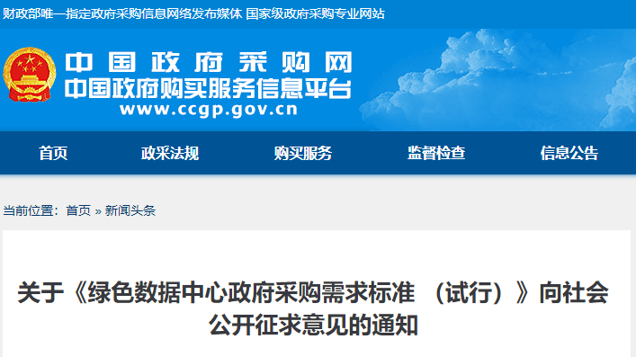 关于《绿色数据中心政府采购需求标准 (试行)》向社会公开征求意见的通知