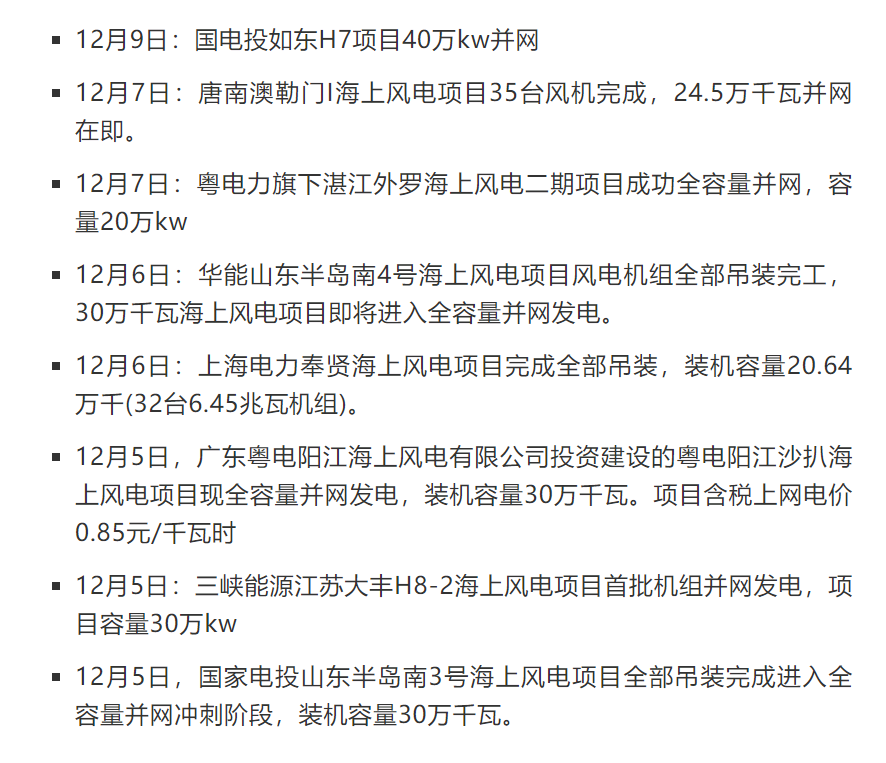 时间距离2021年12月31日只剩下20天了,就在过去10天,海上风电陆续传来并网的好消息: