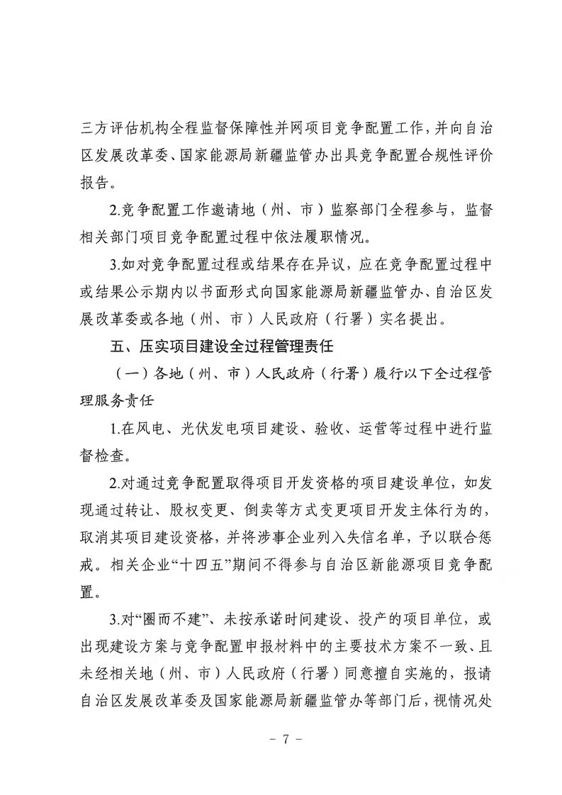 日前,新疆维吾尔自治区发改委发布《关于2021年风电、光伏发电年度开发建设方案有关事项的通知(征求意见稿)》及《新疆维吾尔自治区2021年保障性并网新能源项目竞争配置指导方案》。根据国家下达新疆2021年度非水电最低消纳责任权重12.5%,2022年非水电消纳责任权重最低预期值13.75%的目标进行测算,2021年-2022年,新疆新增风电、光伏发电项目保障性规模约5.26吉瓦。