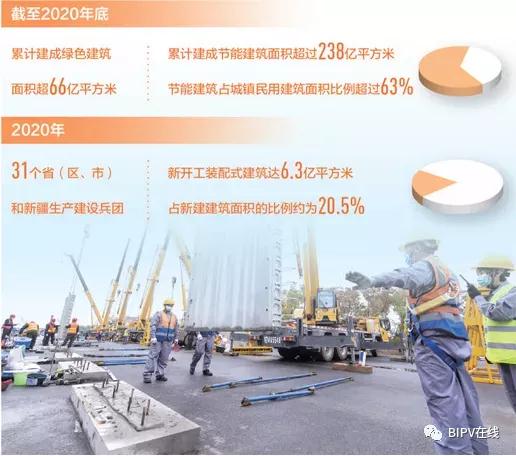 相比传统现浇方式,装配式建造不仅速度快,还能有效降低施工过程中的建筑垃圾排放,并且能减少扬尘和噪声等环境污染。数据显示,2020年,31个省(区、市)和新疆生产建设兵团新开工装配式建筑达6.3亿平方米,较2019年增长50%,占新建建筑面积的比例约为20.5%。