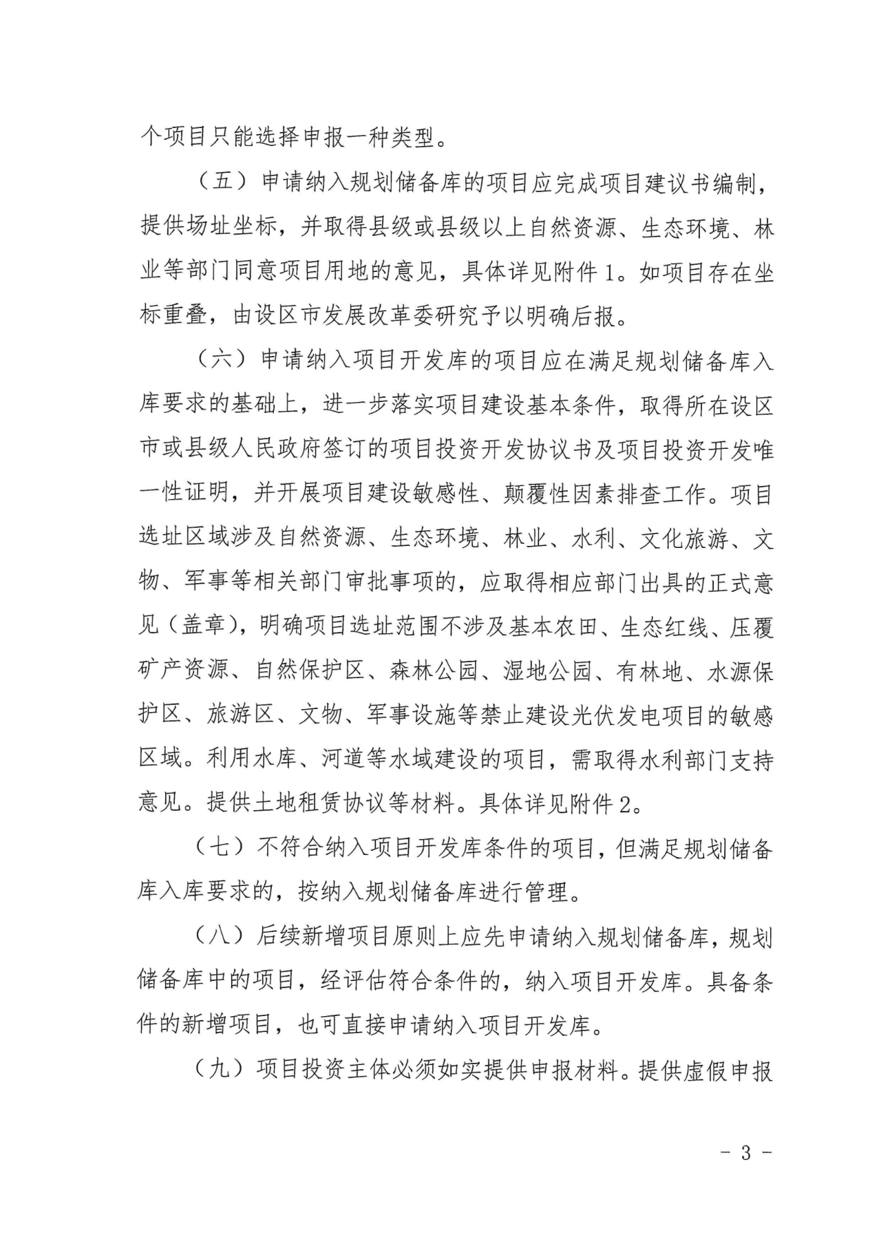根据文件要求,集中式光伏发电规划项目库分为开发库和储备库两类。正在开展前期工作,初步落实土地条件的项目可纳入储备库;前期工作比较完善,支持文件完备,且签订项目投资开发协议并已落实用地的项目可纳入开发库。未列入项目开发库的集中式光伏发电项目,原则上不得参与新能源建设年度竞争性配置。