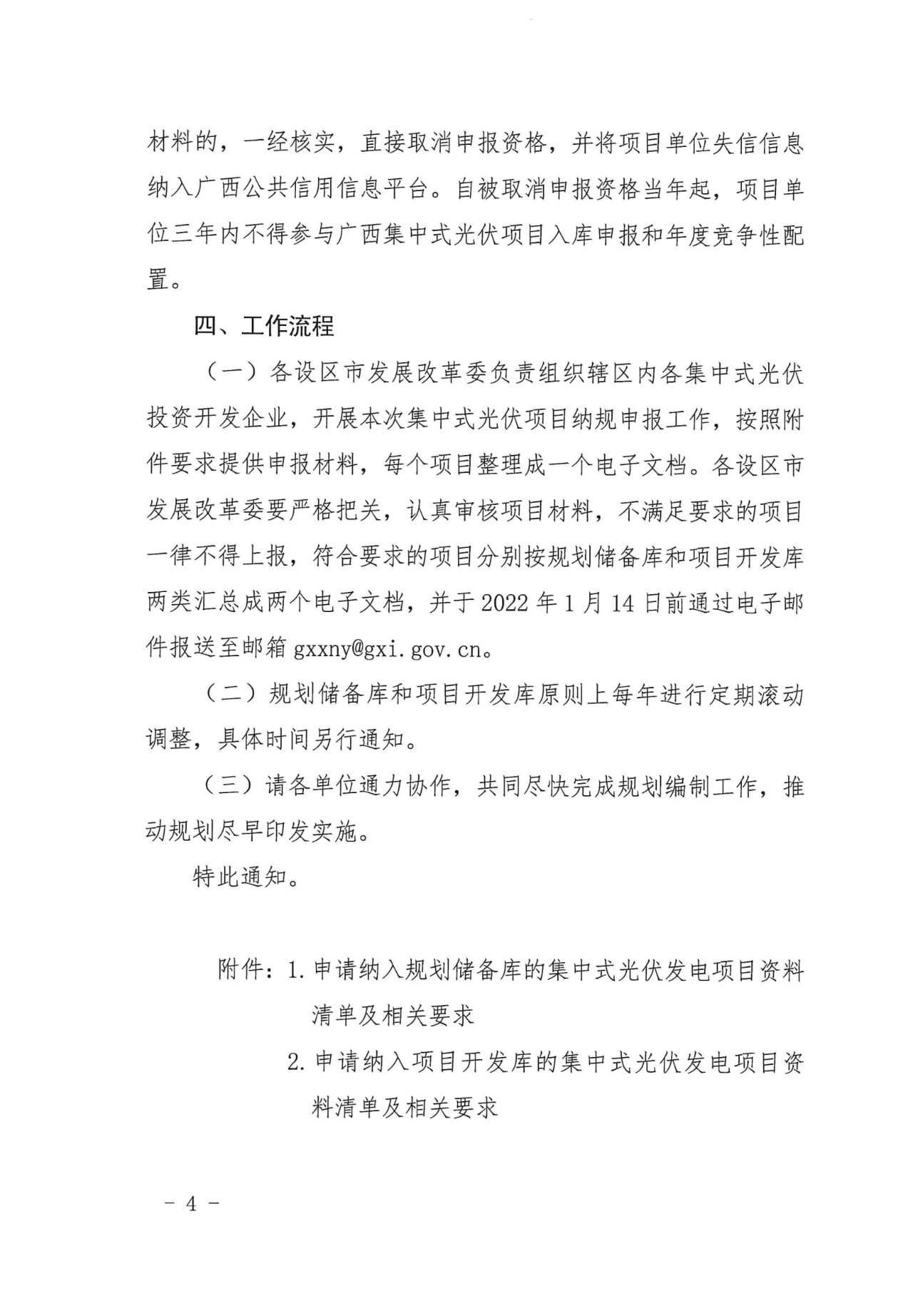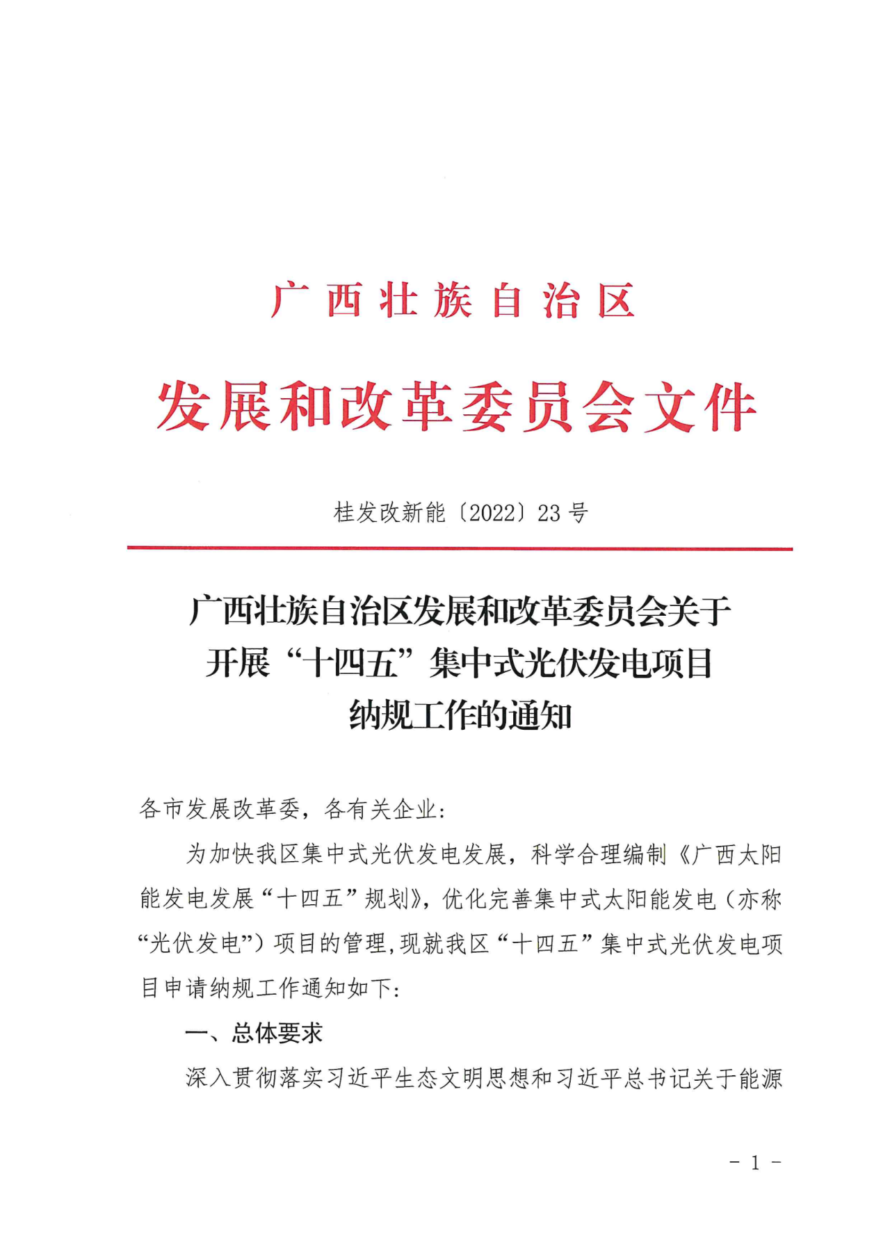 1月8日,广西发改委印发《开展"十四五"集中式光伏发电项目纳规工作的通知》,就建立集中式光伏规划项目库给出指导意见。