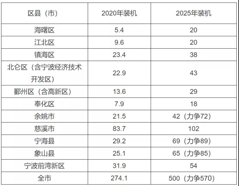 宁波各区县(市)“十四五”光伏发展目标(单位:万千瓦)