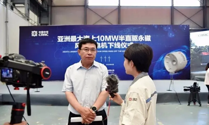 中国农机协会风电设备分会副秘书长董万里在仪式结束后接受了采访,他对中车永济电机与明阳智能合作开发出10MW风力发电机表示祝贺,也代表协会对中车永济电机20多年来在风电行业发挥的标杆引领作用表示充分认可。他表示,未来海上风电成为趋势已成必然,作为风电装备制造企业需要持续关注质量,通过技术创新实现成本降低、可靠性提高。