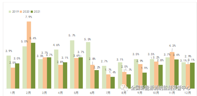 2021年,湖南、新疆、甘肃地区新能源利用率分别提升3.5、2.7、1.9个百分点,青海、蒙西地区新能源利用率分别下降5.7和1.5个百分点。