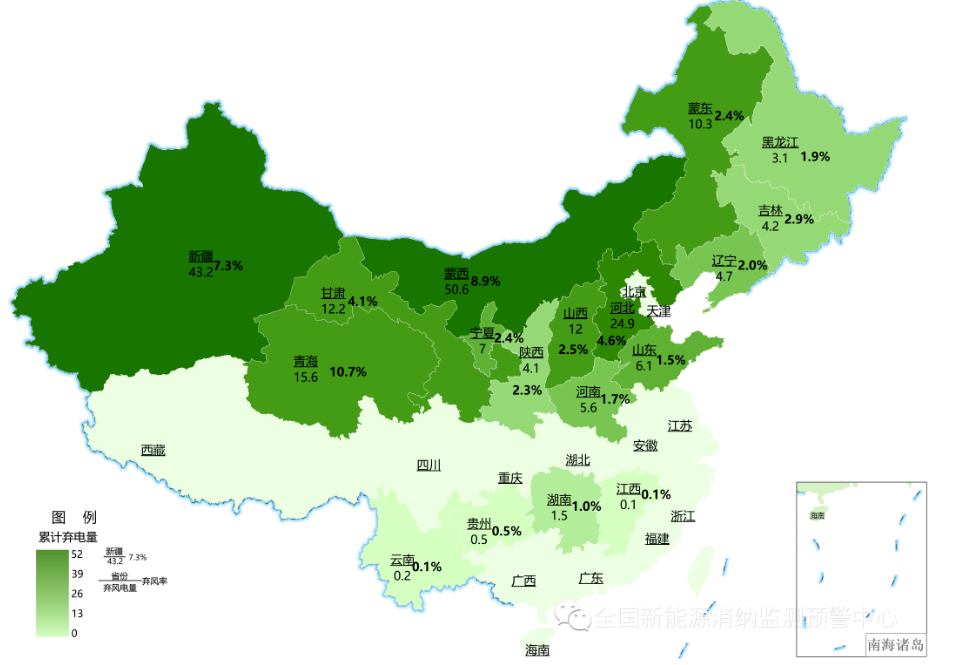 各地区2021年累计弃风电量(亿千瓦时)及弃风率