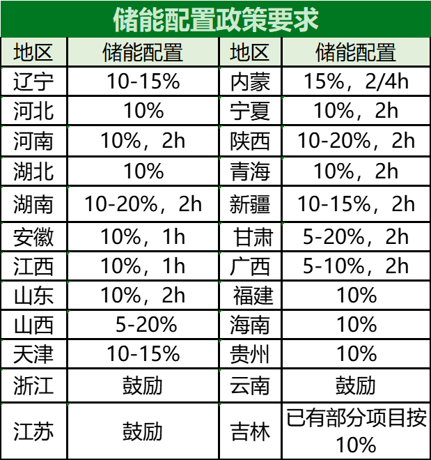 截止到2021年底,全国已有21个省级行政区在全省或部分地区明确了新增新能源发电项目规制性配储能比例以及配储时长。3个省份出台鼓励配储政策。综合来看,平均配储比例约为10%,配储时长约为2h。其中,全省或部分地区要求配储的省份2021年风电光伏装机量达到全国风光装机量的81%,为储能装机量增加的主要来源。