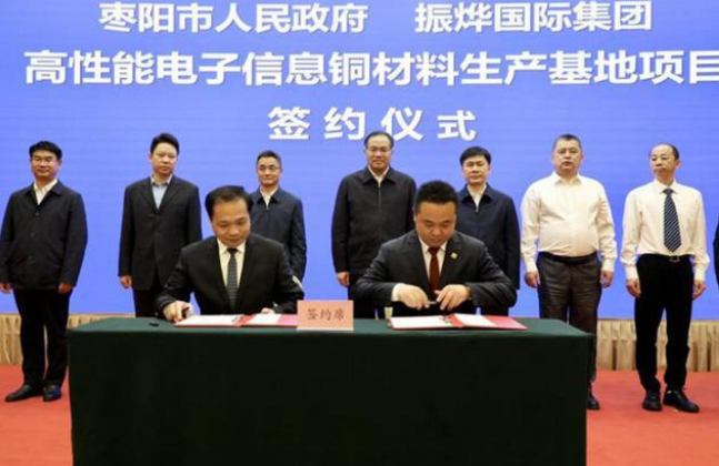 4月12日,枣阳市三个重大项目集中签约活动在襄阳南湖宾馆举行。振烨国际集团高性能电子信息铜材料生产基地项目、中核汇能枣阳新能源全产业链项目、华能湖北新能源有限责任公司抽水蓄能一体化能源项目签约落地,总投资381.85亿元。