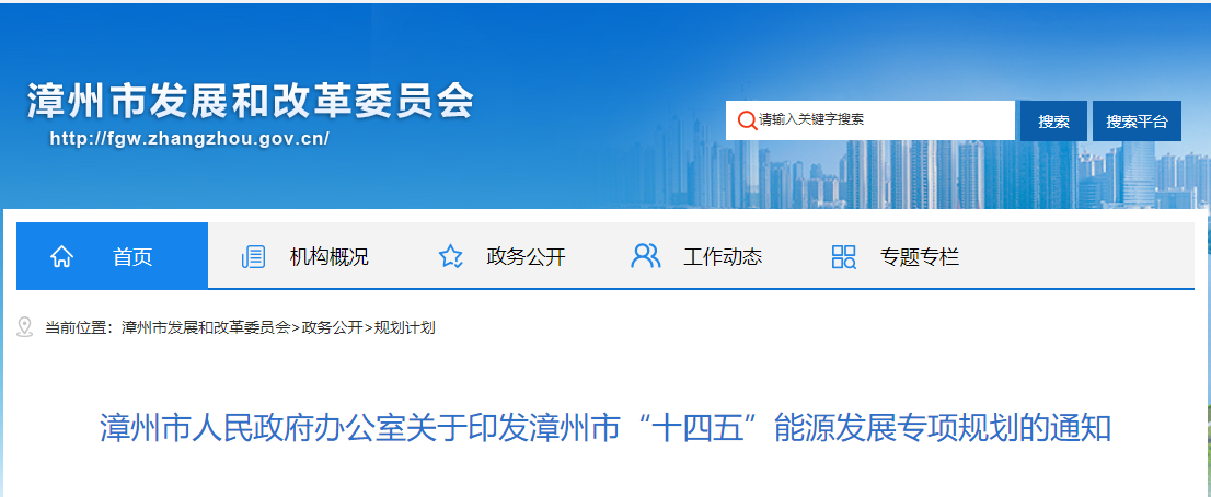日前,福建省漳州市人民政府印发《漳州市“十四五”能源发展专项规划》。