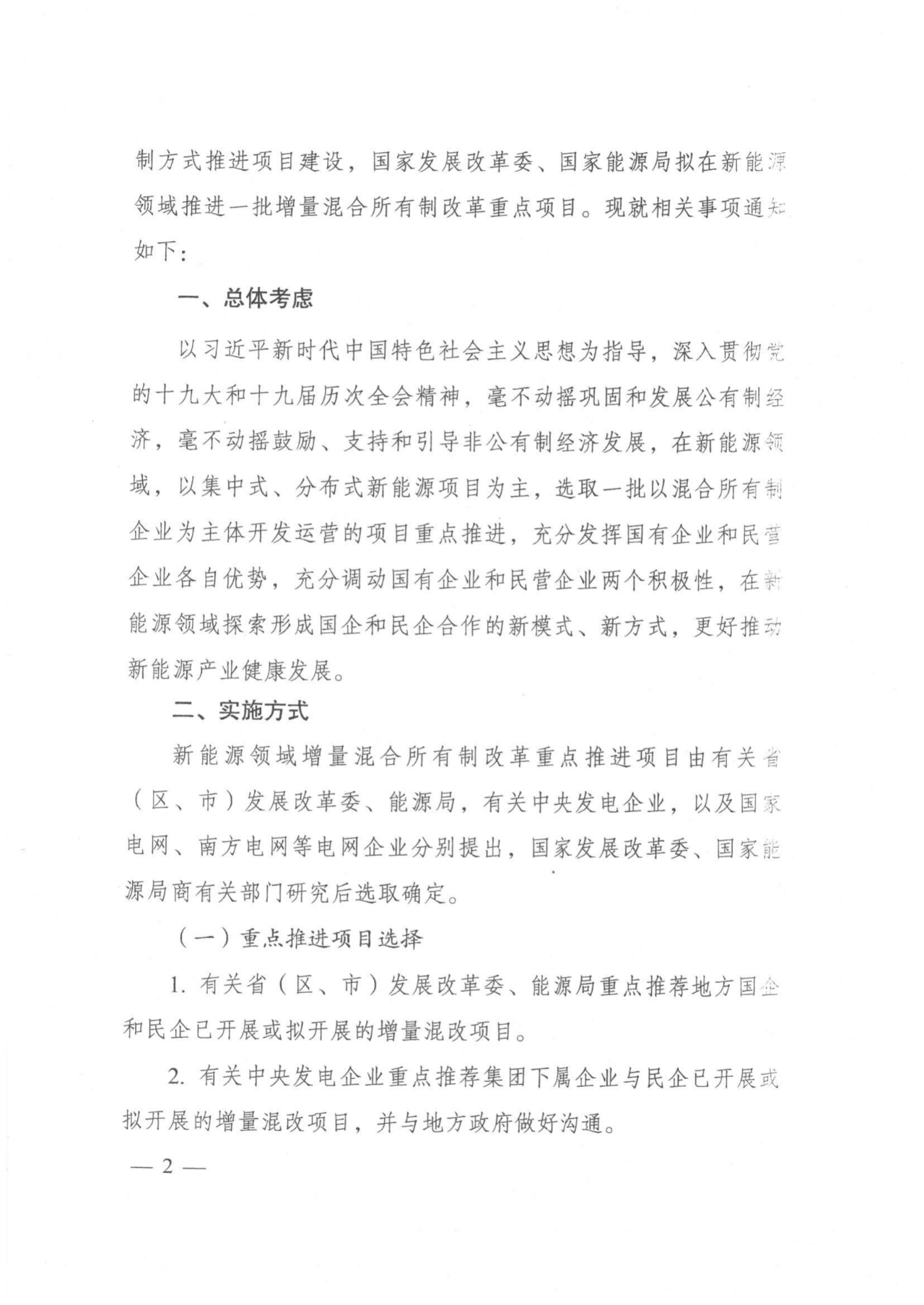 近日,国家发改委、国家能源局印发《关于做好新能源领域增量混合所有制改革重点推进项目工作的通知》,旨在发挥国有企业、民营企业在新能源领域的各自优势,鼓励以合作新设市场主体等增量混合所有制方式推进一批混合所有制改革重点项目。