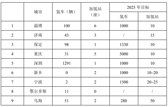 氢能产业的发展情况车辆和加氢站数据是主要指标,当地的政策支持、产业配套、氢源禀赋、应用场景等也是氢能发展初期不可或缺的条件,9家潜力氢能城市名单如下。