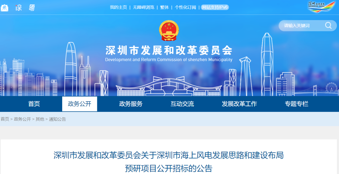 深圳市发展和改革委员会关于深圳市海上风电发展思路和建设布局预研项目公开招标的公告