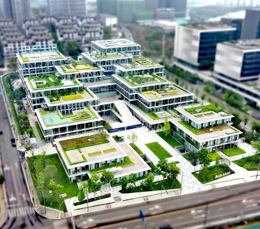 2022年4月,由中国建筑西南设计研究院牵头打造的成都首个“近零碳建筑”——中建滨湖设计总部(中建低碳智慧示范办公大楼)启用。