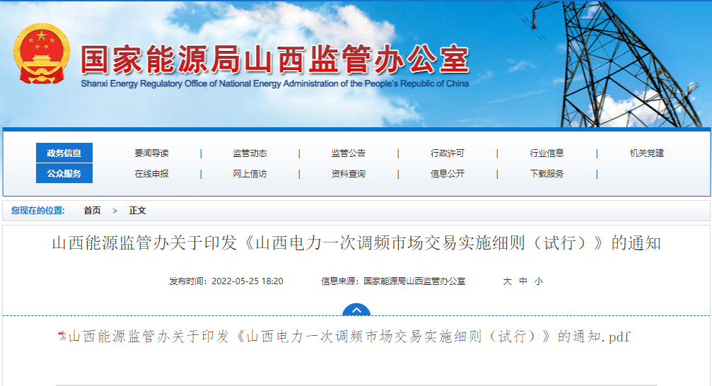 5月25日山西能源监管办印发《山西电力一次调频市场交易实施细则(试行)》的通知,细则指出,市场主体是指依据本细则规定的有关条件和程序获得准入的发电侧并网主体及新型储能,包括火电、燃气、水电、风电、光伏发电等发电侧并网主体及电化学、压缩空气、飞轮等新型储能。