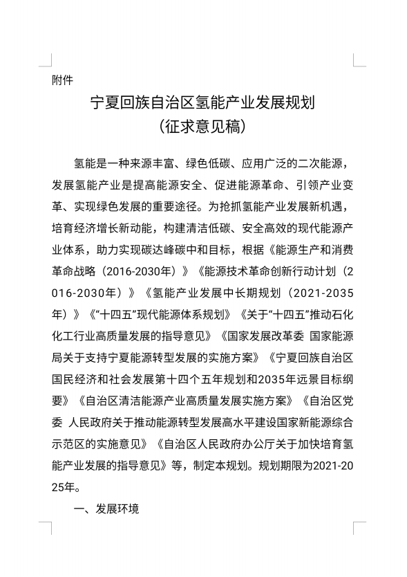 附件:宁夏回族自治区氢能产业发展规划(征求意见稿)