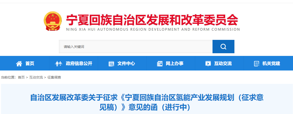 自治区发展改革委关于征求《宁夏回族自治区氢能产业发展规划(征求意见稿)》意见的函(进行中)