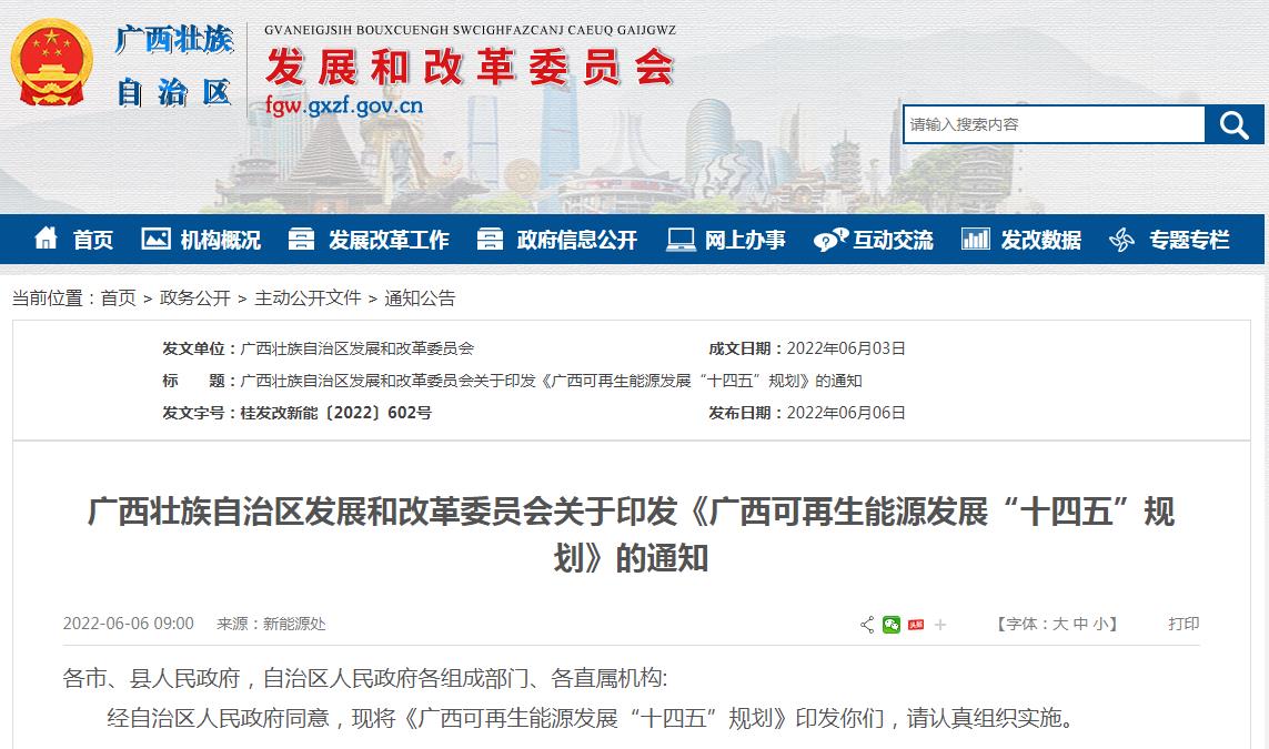 广西省“十四五”:推动可再生能源大规模开发