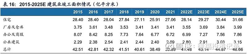 1.预计到2025年,建筑业竣工面积将达到46.66亿平方米;