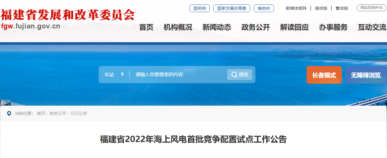 根据国家发展改革委、国家能源局海上风电竞争配置有关政策规定,《国家能源局综合司关于福建省海上风电规划的复函》(国能综函新能〔2022〕26号)和省政府同意的《福建省海上风电市场化竞争配置试点初步方案》要求,福建省发展和改革委员会组织开展福建省2022年海上风电首批竞争配置试点工作。具体情况如下: