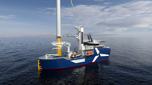 这艘船由Kongsberg Maritime设计,长90米,宽19.6米,设计航速13节,采用混合动力系统,可支持海上风电场建设期的调试工作和投运后的运维工作,配备MacGregor的运动补偿舷梯和运动补偿起重机。