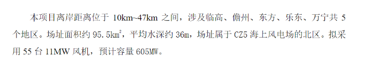 此前,国家能源局对海南省“十四五”期间海上风电建设规划的相关批复已经正式下达至海南省,整体规划规模约为1230万千瓦,总场址面积约1902平方公里,水深11米-90米,离岸距离10公里-47公里。