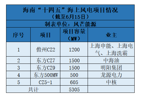 从当下各类公开信息梳理发现,海南累计已有5.305GW“十四五”海上风电项目确定业主。