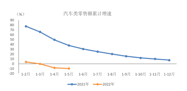 据中国汽车工业协会整理的国家统计局数据显示,2022年5月,汽车产销呈现明显恢复性增长,受此影响,汽车类零售额环比也呈快速增长。