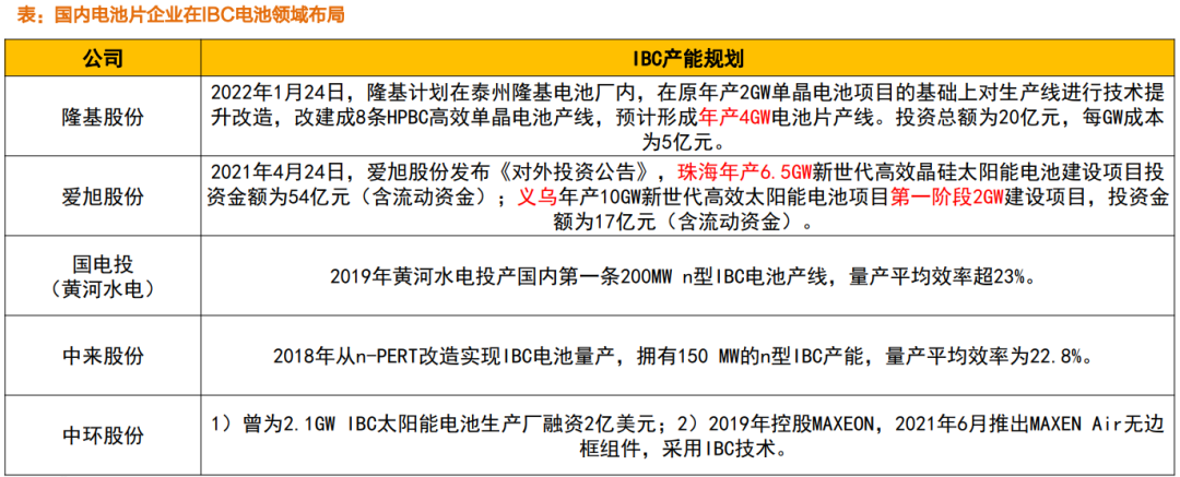据华西证券研报,布局IBC电池的国内企业众多,如隆基、爱旭、普乐、天合、中来、晶澳等。