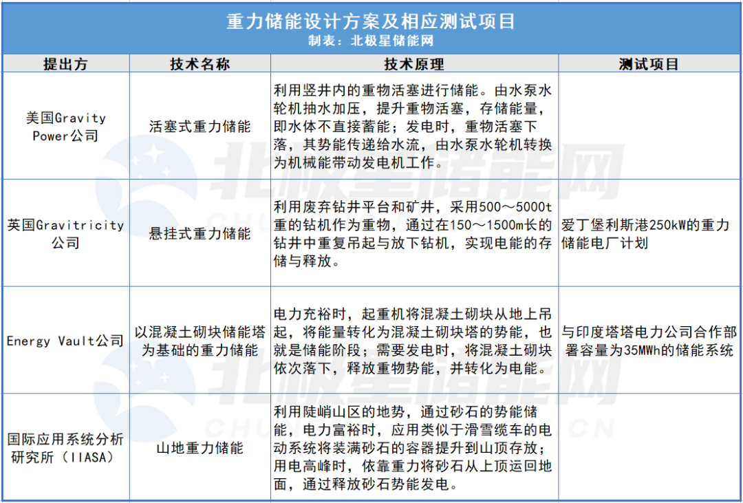 2020年之后,重力储能开始冲破设想,很多公司投身储能技术设计和试验,主要包括如下几种设计方案: