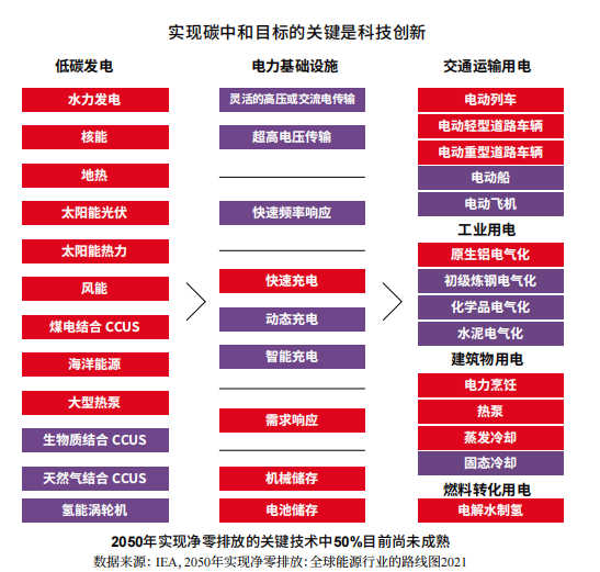 碳中和的技术创新,从产业层面来看,仍有赖于能源、交通、工业和建筑等基础行业的联动。从能源替代源头减量,到节能提效回收利用,再到碳捕集与数字化应用,市场派和技术派分而进击,各赛道熙攘纷繁。