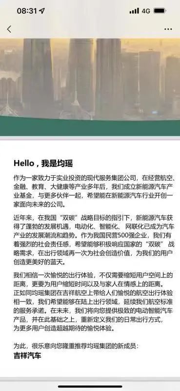 日前,网上流传了一则关于吉祥航空母公司均瑶集团入局造车的传闻,并且将汽车品牌命名为吉祥汽车。均瑶集团将成立新能源汽车产业基金,希望能在新能源汽车行业开创一家面向未来的公司。