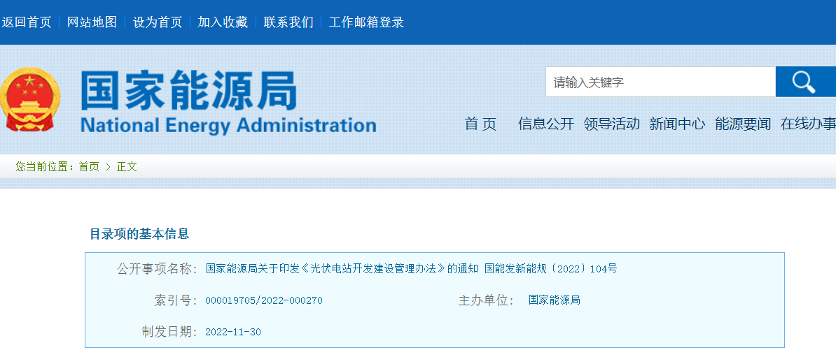 12月26日,国家能源局发布关于印发《光伏电站开发建设管理办法》的通知。通知强调:除国家能源局规定的豁免情形外,光伏电站项目应当在并网后6个月内取得电力业务许可证,国家能源局派出机构按规定公开行政许可信息。电网企业不得允许并网后6个月内未取得电力业务许可证的光伏电站项目发电上网。