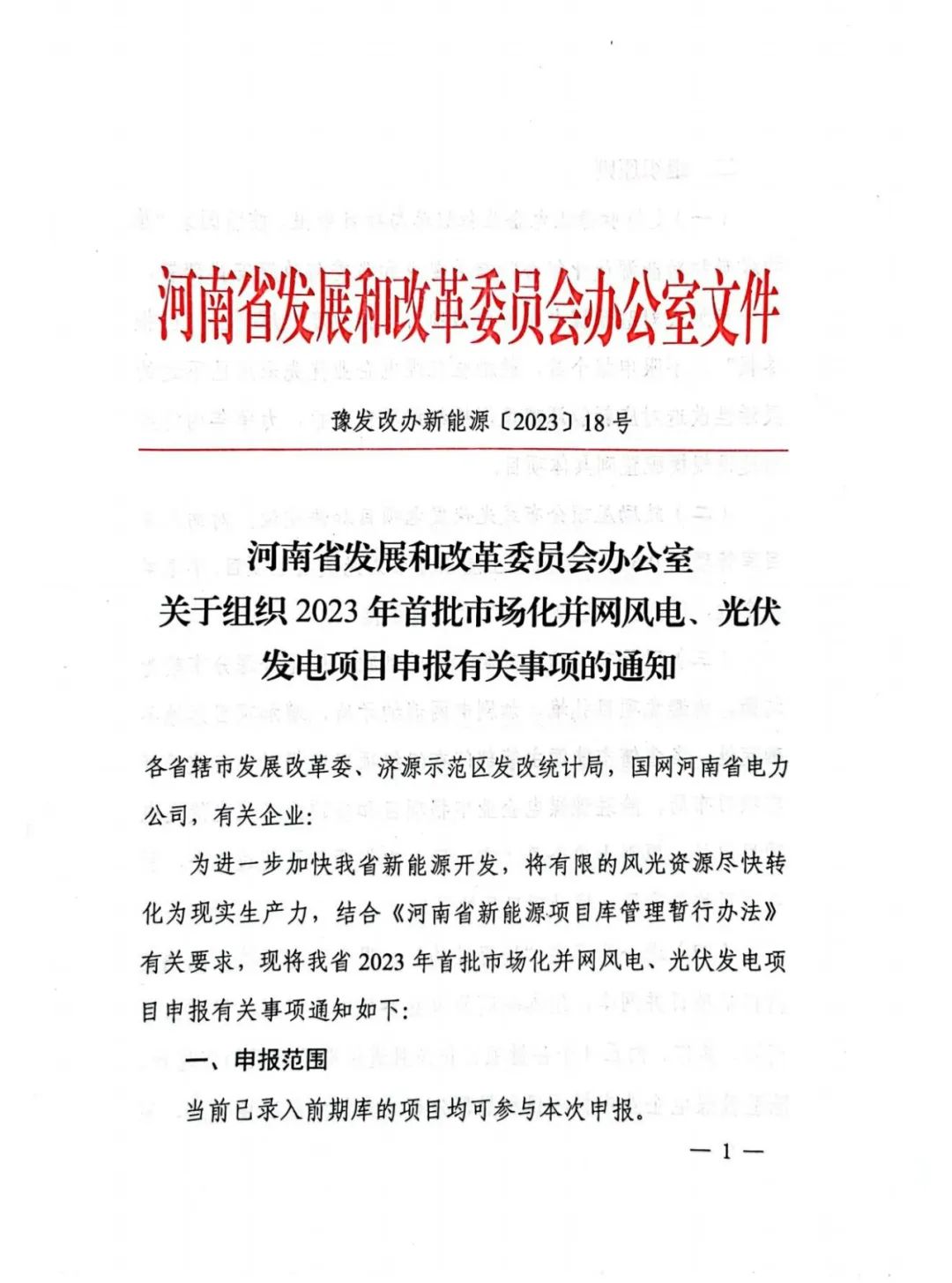 3月3日,河南发改委印发《关于组织2023年首批市场化并网风电、光伏发电项目申报有关事项的通知》,结合《河南省新能源项目库管理暂行办法》有关要求,进一步加快新能源开发。