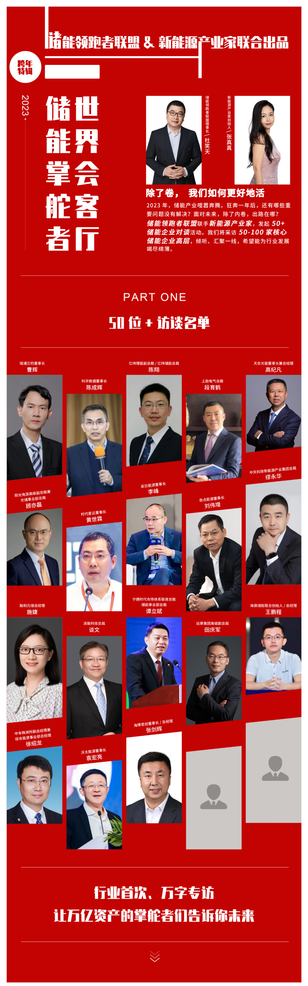 带着这些疑问,储能领跑者联盟联手新能源产业家,发起“50+储能企业对谈”活动。我们将采访50家以上储能企业高层,倾听、汇聚一线声音,希望能为行业发展竭尽绵薄。