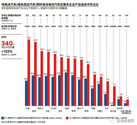 相较第六期报告,纯电动汽车与插电混动汽车销售增速有所放缓。接受调研的18个国家在2019年和2018年的销量分别为210万辆和190万台,年增长率为10.5%。相比之下,尽管全球汽车销量停滞不前,但为实现降低碳排放的目标,电动汽车销量仍需实现两位数的年增长率。目前超过340款纯电动和插电混动车型已在《汽车行业颠覆性数据探测》报告中的18个国家销售,相比2016年第一期报告中的125款车型有着大幅增加。
