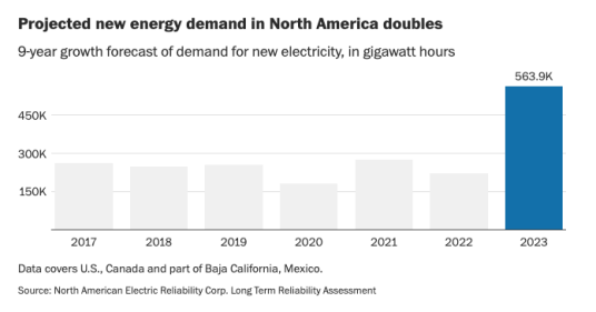 类似的事情正在整个美国上演,西北地区的俄勒冈州,波特兰最近将未来五年新增电力需求的预测提高了一倍,称数据中心和“快速工业增长”是驱动因素。