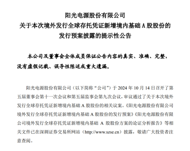 就在10月14日晚,光伏逆变器领域的龙头企业阳光电源股份有限公司发布公告,宣布计划在境外发行全球存托凭证(GDR),并拟在德国法兰克福证券交易所上市。