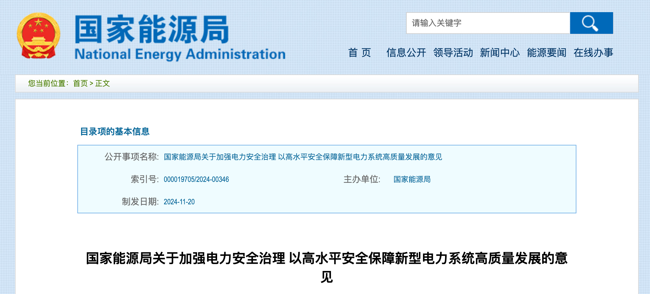 这两份文件分别冠名为《电网安全风险管控办法》(简称“《办法》”),《国家能源局关于加强电力安全治理 以高水平安全保障新型电力系统高质量发展的意见》(简称“《意见》”)。