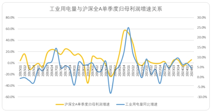 图片图:工业用电量与沪深全A归母净利关系,来源:Choice金融客户端,锦缎整理
