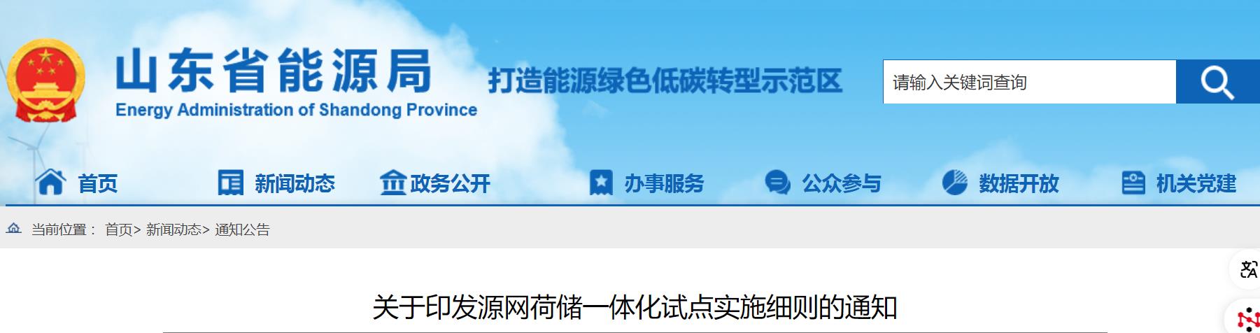 日前,山东省能源局印发《关于印发源网荷储一体化试点实施细则的通知》。