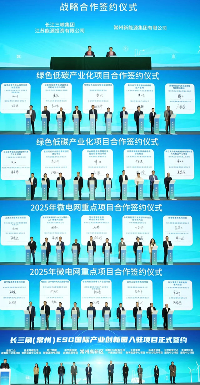 活动中,常州市人民政府与国网江苏省电力有限公司签署共建微电网示范城市合作协议,常州新能源集团有限公司与长江三峡集团江苏能源投资有限公司签署合作框架协议;10个绿色低碳产业化项目、10个微电网重点项目现场签约。