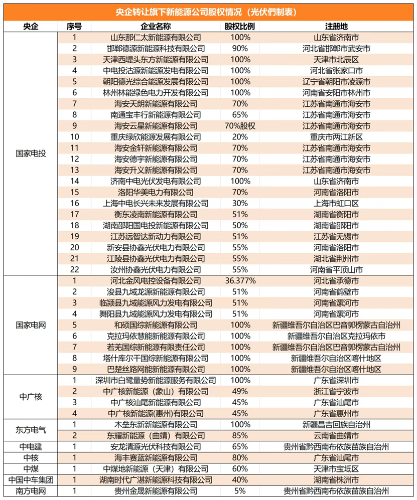 国家电网:2024年9月,国网冀北电力转让河北金风电控设备36.377%股权;同月,国网河南公司转让三家新能源公司51%股权;12月,国网新疆综合能源服务有限公司转让5家新能源公司全部股权。