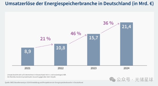 根据德国储能协会(BVES)的行业分析报告,储能行业增长率持续超过30%。这一增速显著高于德国机械制造业的平均水平。与此同时,工商业储能的安装量也在快速上升。
